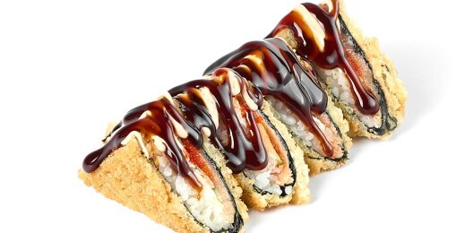 Рис, нори, творожный сыр, огурцы, лосось, икра тобика